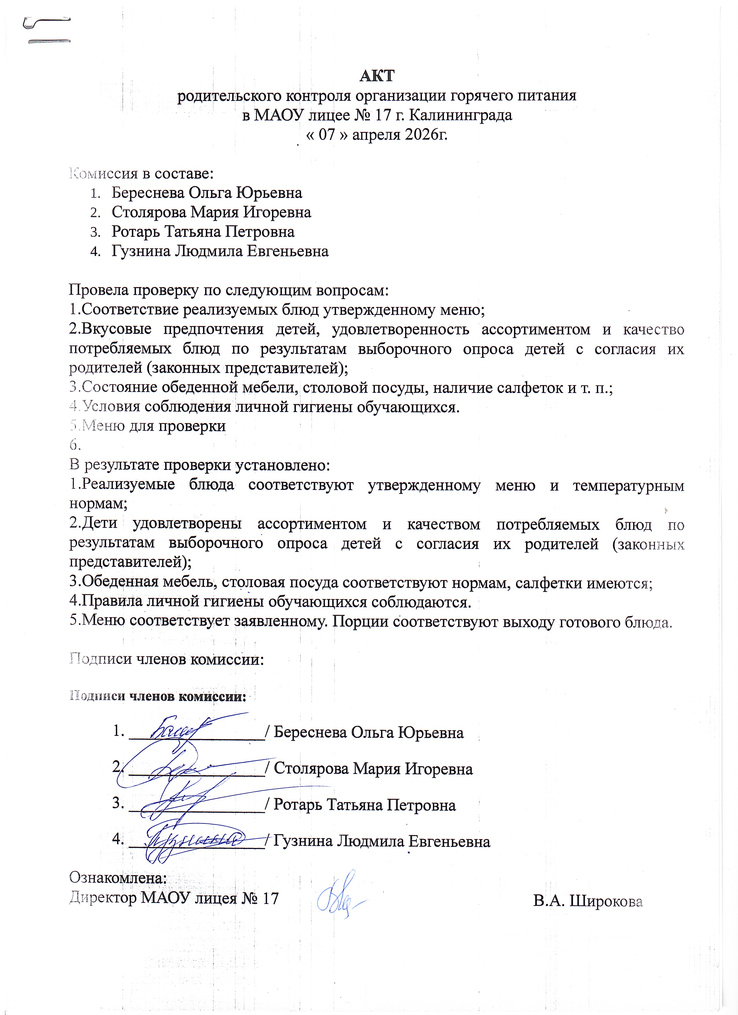 В лицее организован родительский контроль над организацией и качеством питания обучающихся, созданием оптимальных условий, направленных на обеспечение обучающихся сбалансированным питанием, качественного приготовления пищи. Генеральный директор ООО «ЭСПЕРАНТО» Олег Александрович Шапошников показывает родительскому контролю всю необходимую документацию, оборудование, технологический процесс приготовления и хранения пищевых продуктов, соответствие реализуемых блюд утвержденному меню, температурный режим блюд и полноту порций. Родители наблюдают в обеденном зале, как дети входят в обеденный зал, кто их сопровождает, кто и когда накрывает столы, как рассаживаются дети, кто убирает посуду и как дети покидают обеденный зал.
